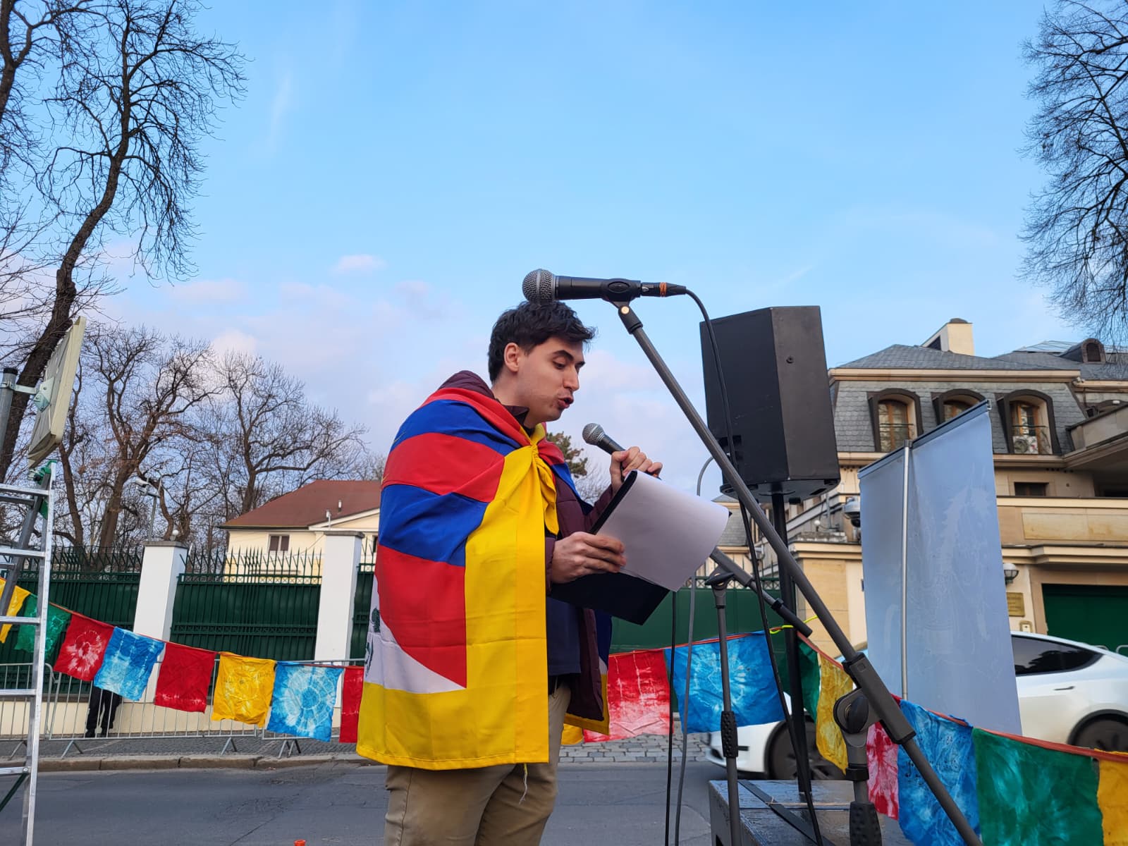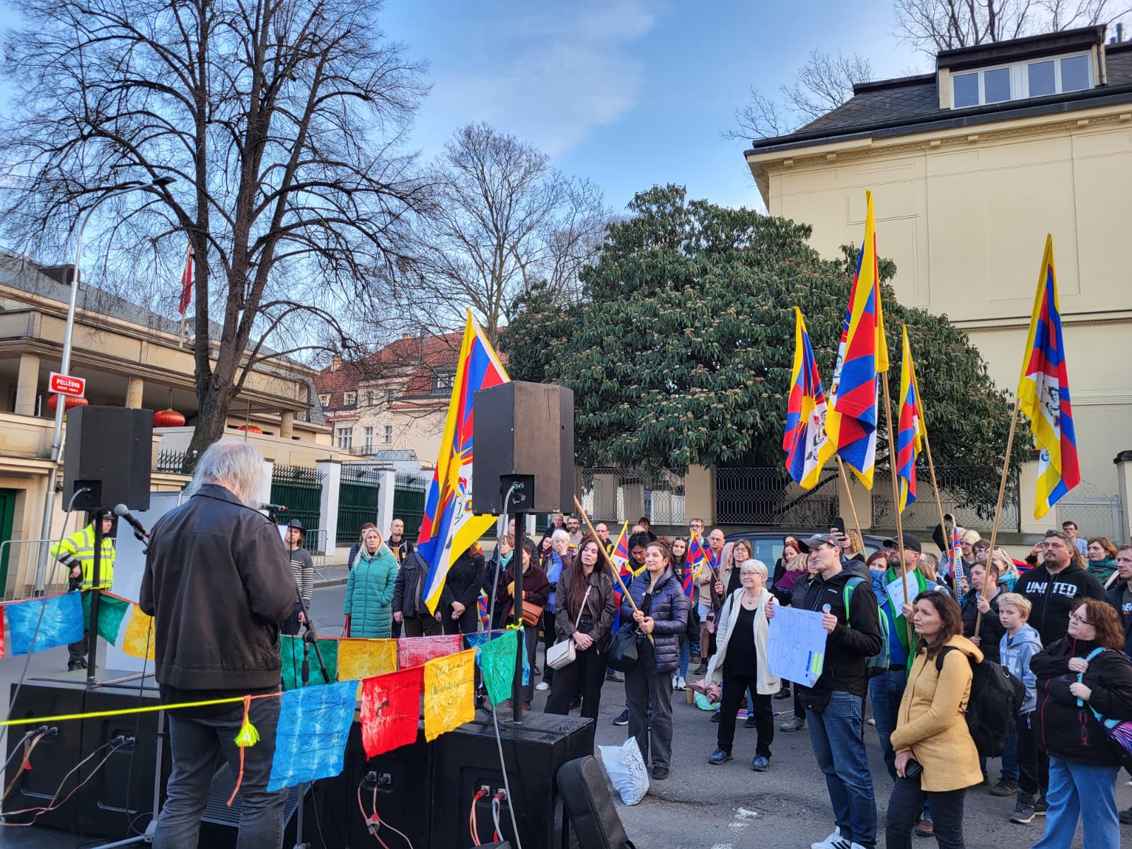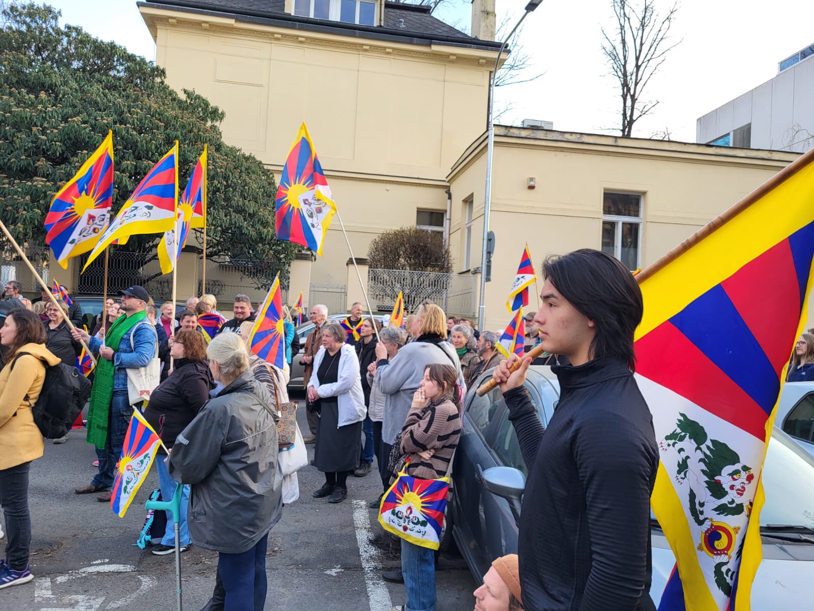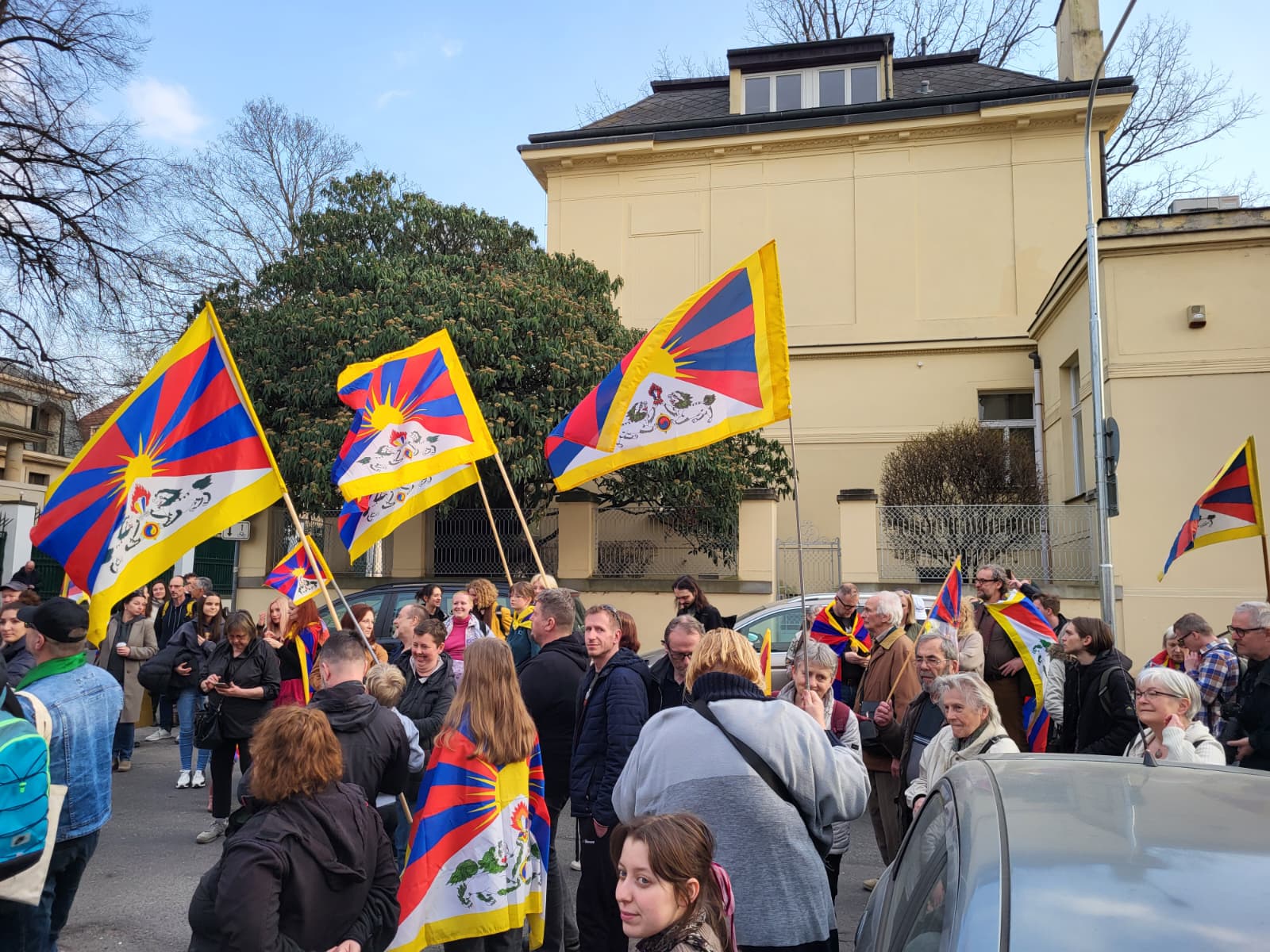 On the same day, approximately 90 demonstrators gathered outside the embassy of the People’s Republic of China in Prague. Protesters called for greater respect for human rights, cultural preservation, and religious freedom in Tibet. Participants included activists, students, and members of civic organisations who carried Tibetan flags and banners.