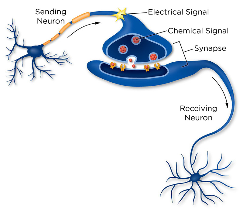 SOURCE: “Neurons Transmit Messages In the Brain,” University of Utah, https://learn.genetics.utah.edu/content/neuroscience/neurons/ (top); “Deep Learning vs. Neural Network: What’s the Difference?,” Smartboost, https://www.smartboost.com/blog/deep-learningvs-neural-network-whatsthe-difference/ (bottom).