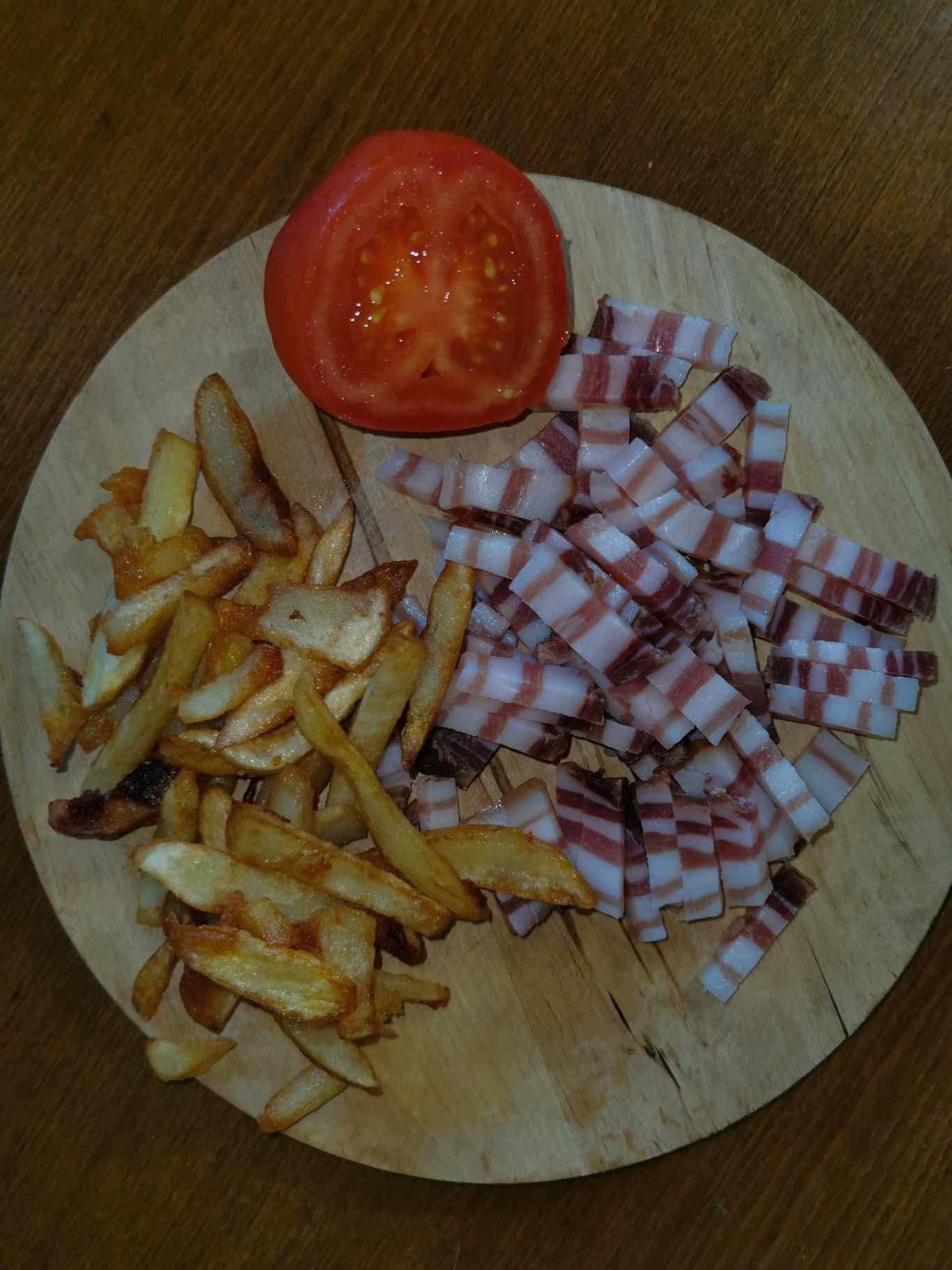 Pomfrit, slanina i paradajz. Nema šta, tradicionalno kršćansko jelo u Bosni, stotinama godina staro.