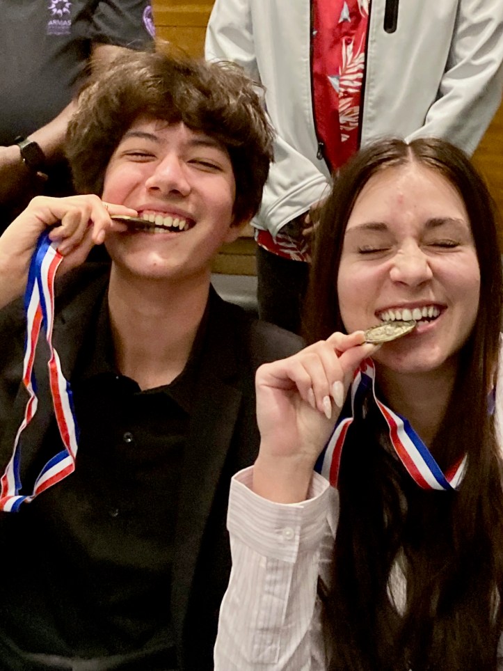 Los Alamos High School students Linus Plohr and Lilia Viteva with their gold medals. Photo Courtesy LAPS