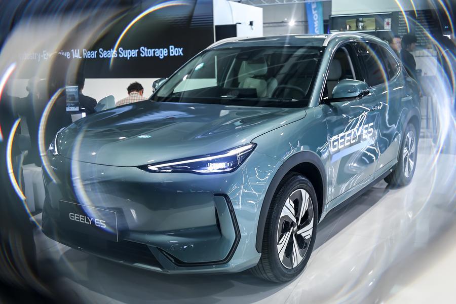 This photo taken on March 13, 2026 shows a car at a booth of Chinese car brand Geely during the International Automobile and Tuning Show in Budapest, Hungary. The International Automobile and Tuning Show kicked off on Friday, with the participation of several Chinese car brands. (Photo by David Balog/Xinhua)â–