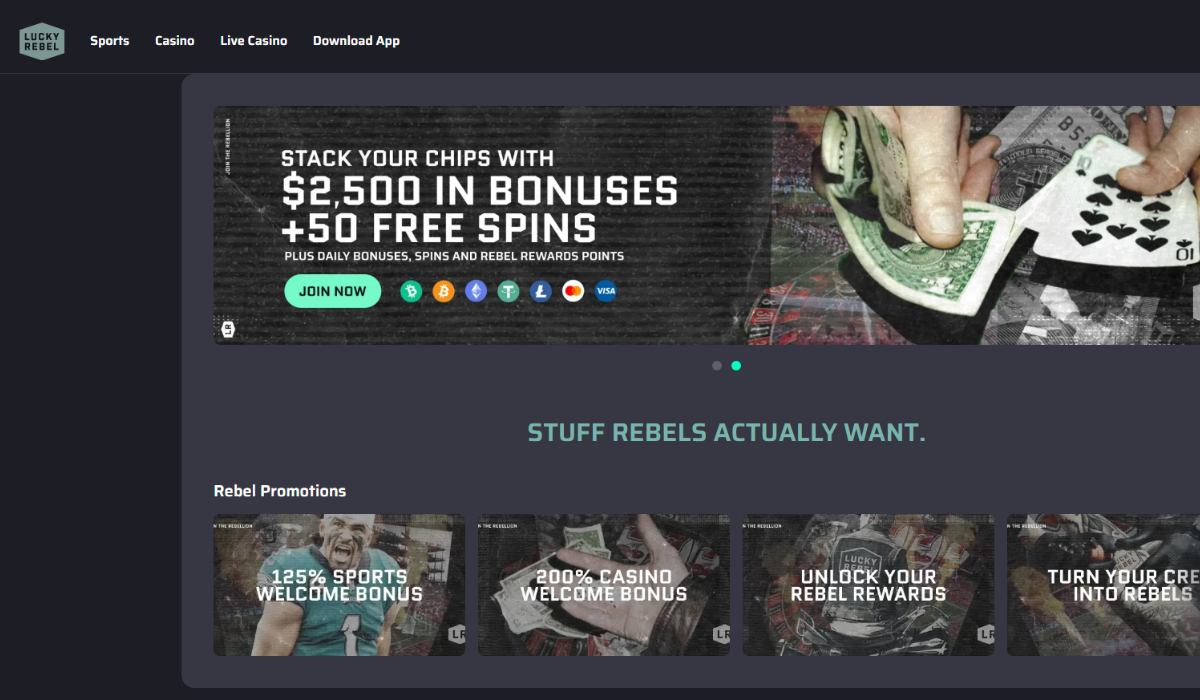 #2. Lucky Rebel: Leading Crypto Casino USA with Generous Payouts & Fast BTC Withdrawals