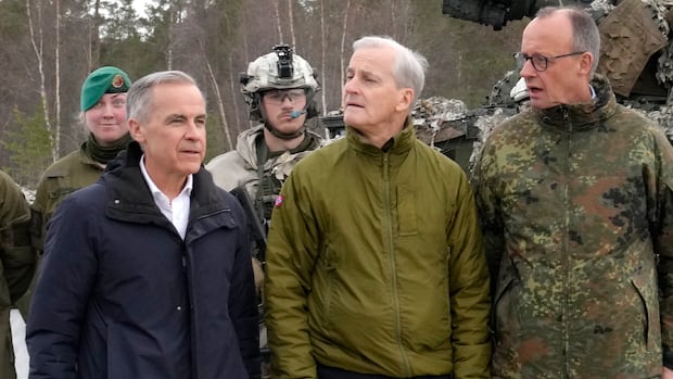 Prime Minister Mark Carney announced Canada will uphold sanctions on Russian oil during his visit to Norway, where he met with Norwegian and German allies. Canadians are among the 25,000 NATO troops gathered there to deter Russian aggression.