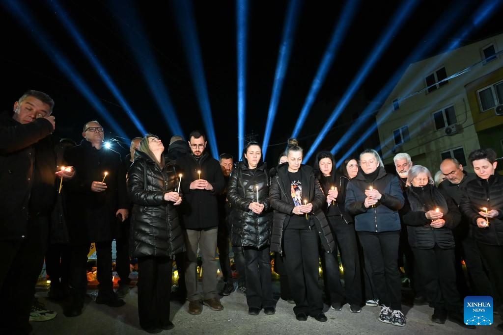 People mourn during a commemoration marking the one-year anniversary of a nightclub fire in Kocani, North Macedonia, March 16, 2026. On March 16, 2025, a nightclub fire claimed the lives of 63 individuals and injured over 100 others. (Photo by Tomislav Georgiev/Xinhua)