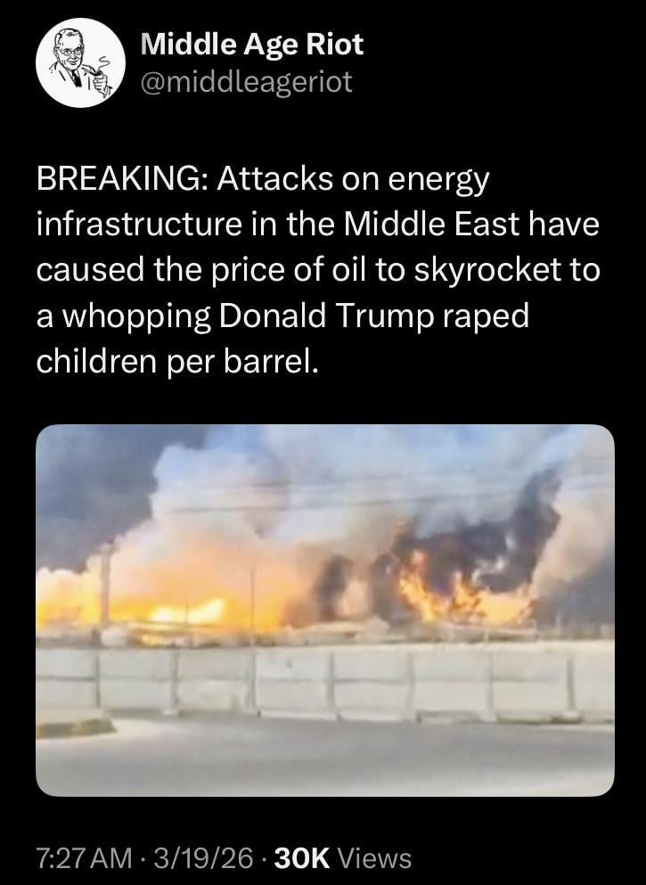So the final conclusion of this war is: Donald Trump’s name shows up in the Epstein Files over a million times… and somehow gas prices are like, “Yeah, that’s our cue to go to the moon.” 🚀. At this point, inflation isn’t economic, it’s just Trump’s name getting frequent flyer miles.
