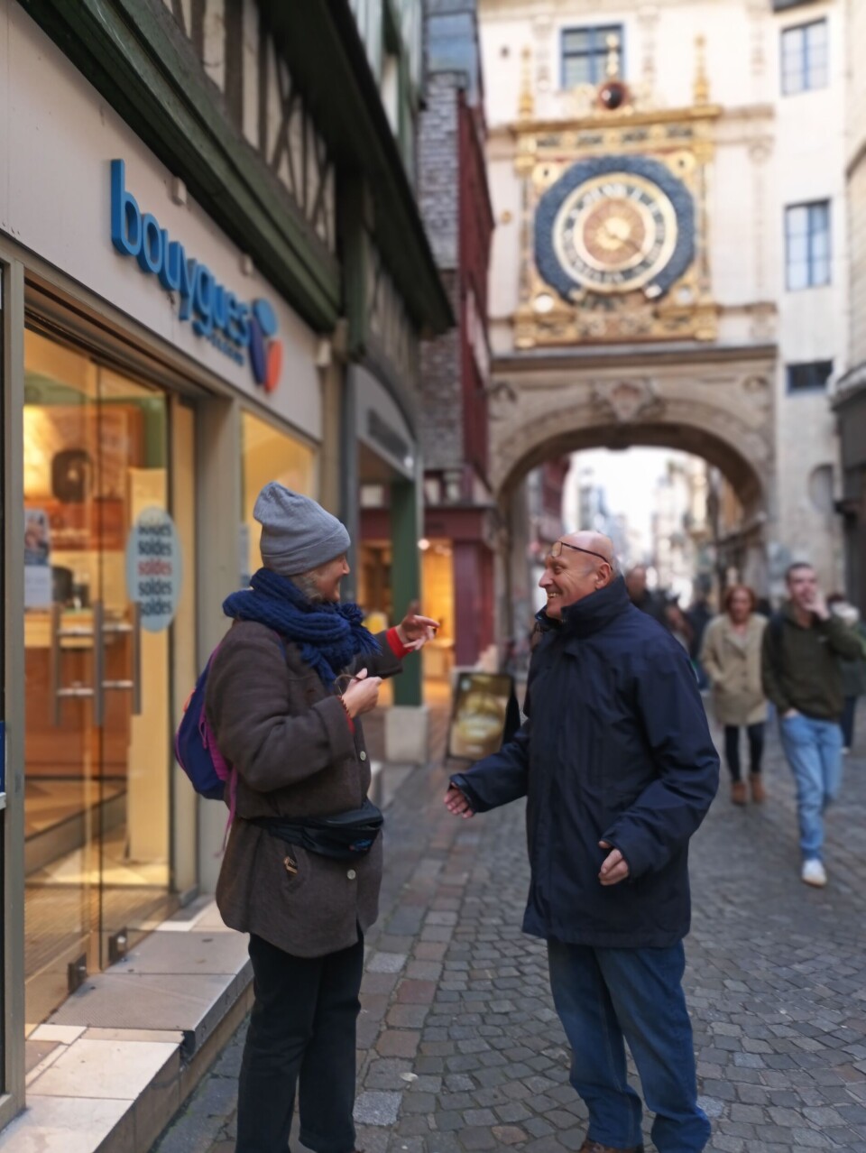 Polly Kenion gives a tour on Rue du Gros Horloge in Rouen