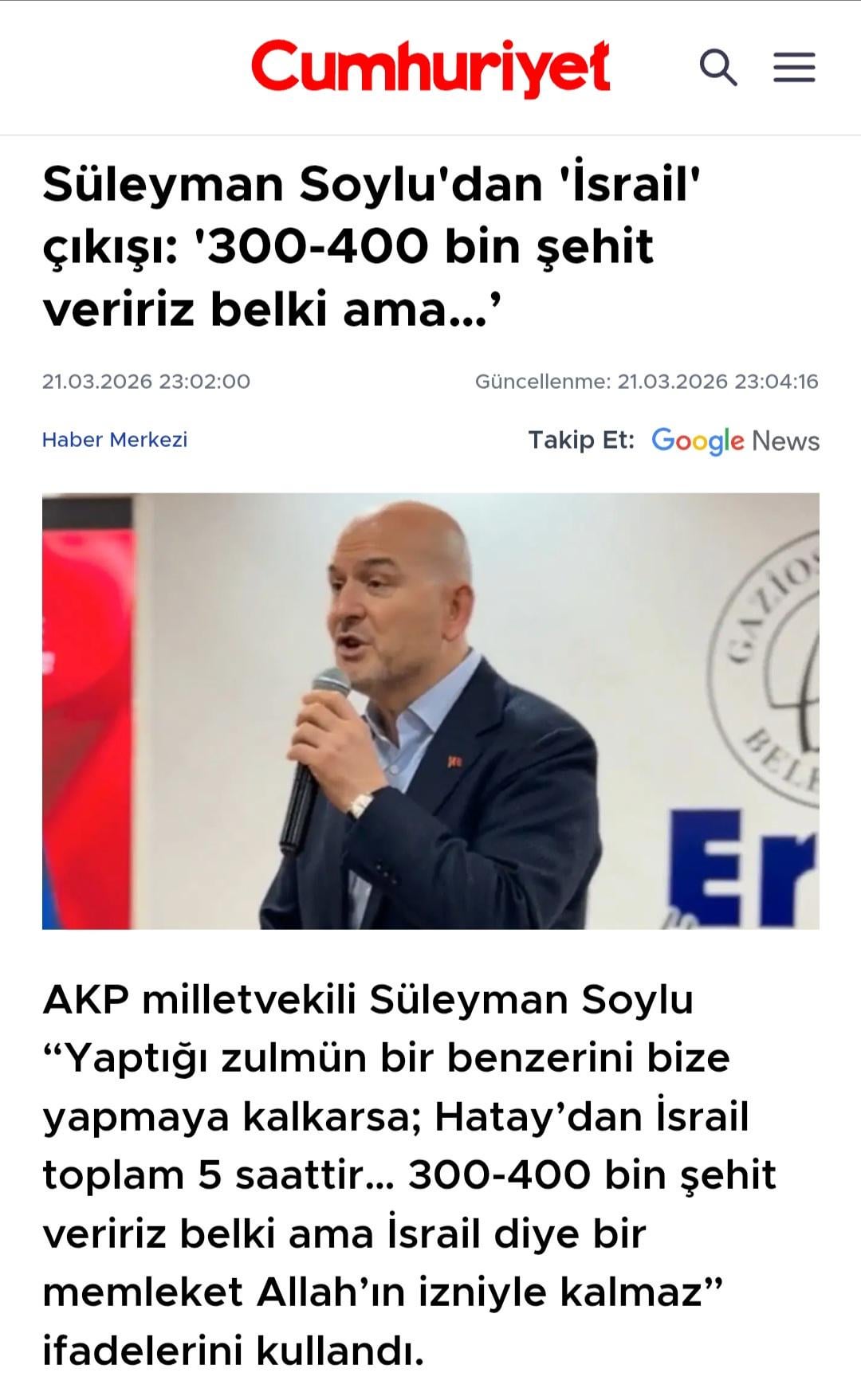 Beştepe’den açıklama: “Gazamız mübarek olsun. Hatay’dan yola çıktık 5 milyon askerle. Tank top uçak herşeyimizle İsrail’i yokedeceğiz inşallah.”