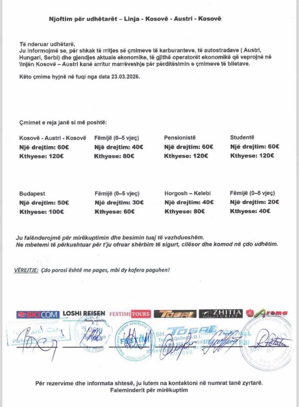 Operators have asked for understanding from travelers, emphasizing that they remain committed to providing safe, quality and comfortable services during trips between Kosovo and Austria. /Telegraph/