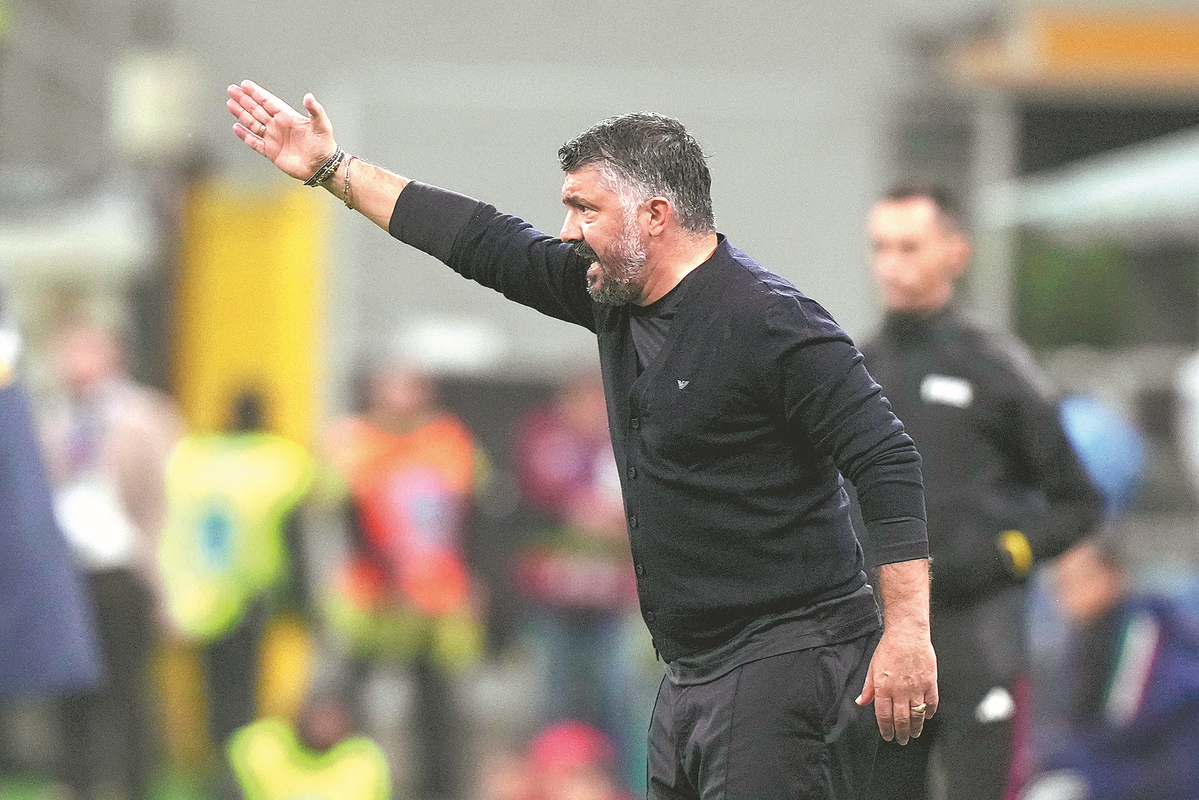 Italy”s head coach Gennaro Gattuso gestures during a 2026 World Cup European qualifier between Italy and Norway in Milan, Italy, on Nov 16. [Photo/Agencies]
