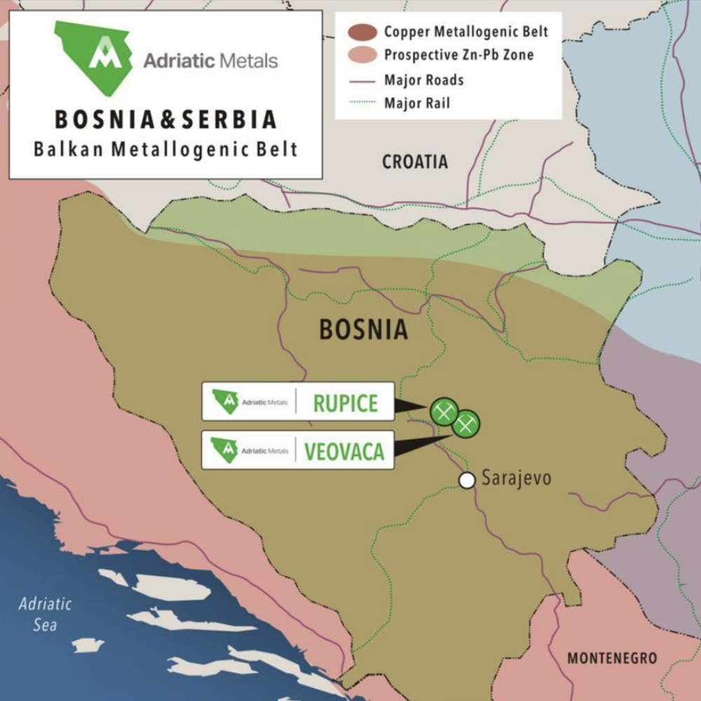 The Metallogenic Belt running through Bosnia. Pic: Adriatic Metals