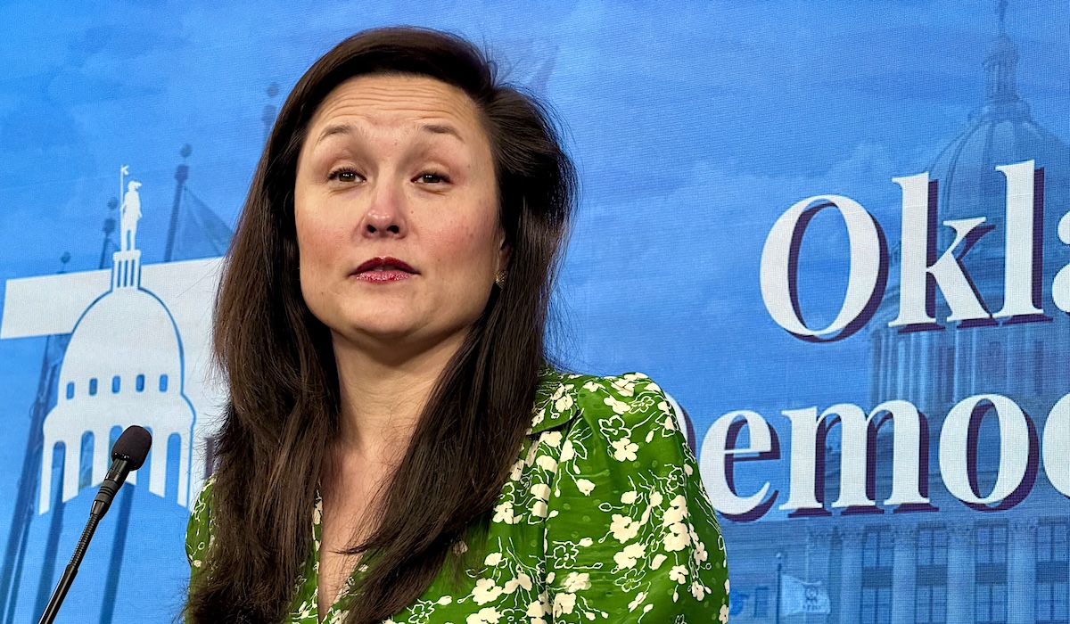 House Minority Leader Cyndi Munson (D-OKC) speaks to reporters Thursday, March 5, 2026, at the Oklahoma State Capitol. (Michael McNutt)
