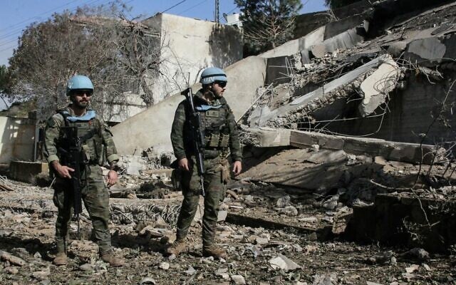 Illustrative: UNIFIL forces inspect the aftermath of IDF strikes in the outskirts of the town of al-Khiam, southern Lebanon on January 31, 2026. (Rabih DAHER / AFP)
