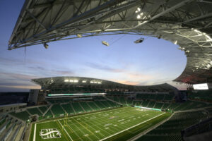 The LEED certified Mosaic Stadium was the first in the Canadian Football League to feature FieldTurf Revolution 360 and the first to feature LED lighting. Credit: CNW Group/City of Regina