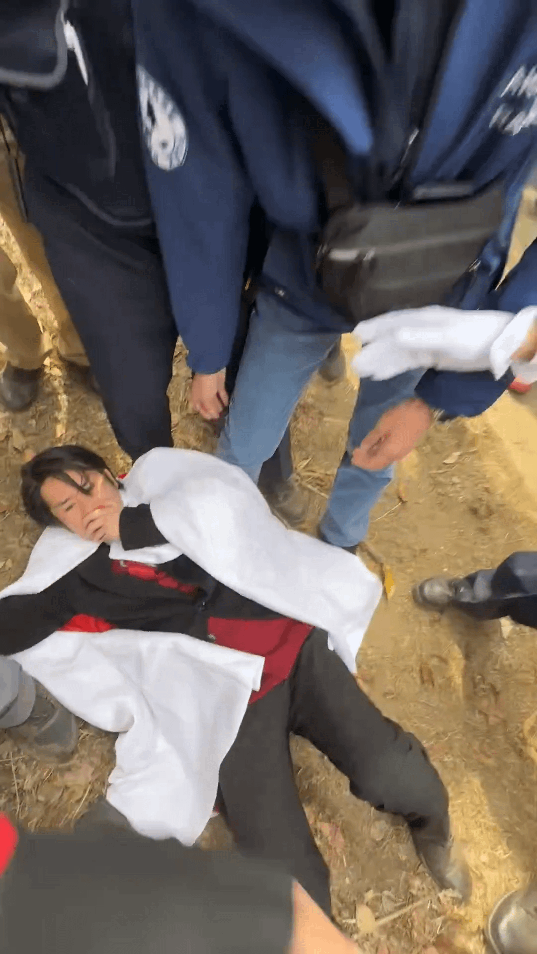 Violently attacked? Looks like he just wiped something off the guy’s mouth.