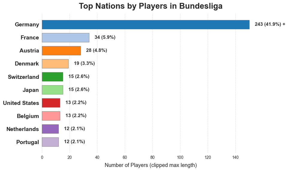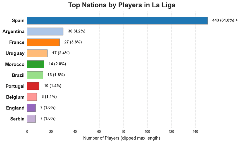 What’s the source for this data? I’m not saying it’s unbelievable, but Spain have nearly twice as many domestic players as any other league, and the total number of players on the graph is over the 500 players that would be officially registered in a season (576).