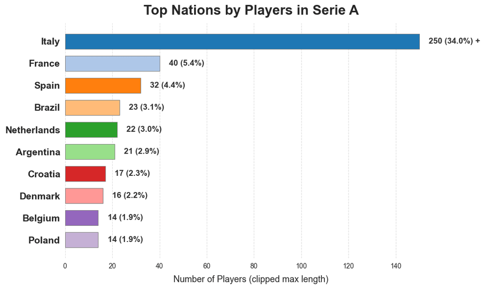 interesting how Spaniards are third in Serie A, but Italian players are not making the top 10 in La Liga