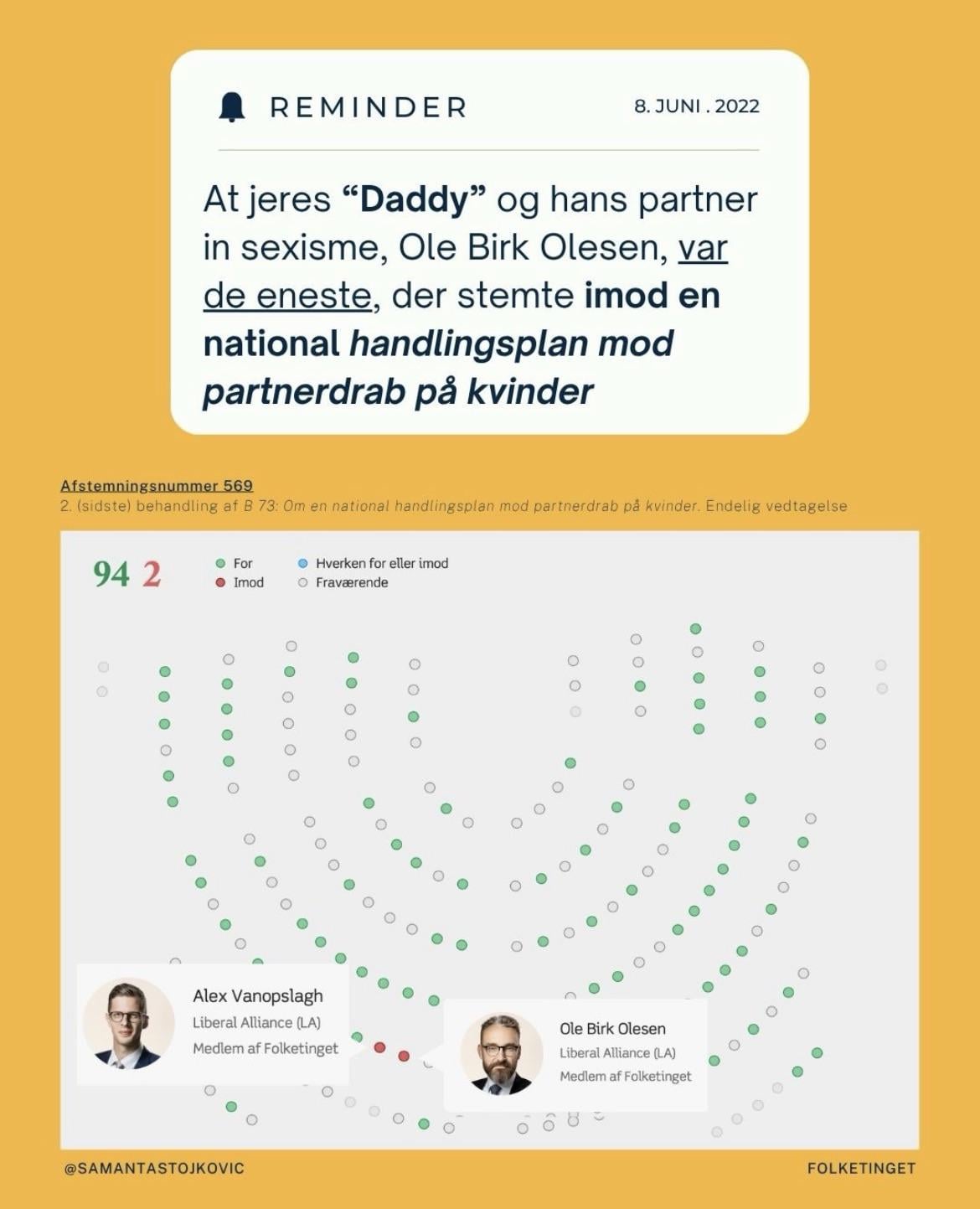Det er så useriøst et indlæg på alle fronter – jeg er bestemt ikke LA stemmer, men det der er simpelthen for sølle kritik. For de første er en handlingsplan for partnerdrab, specifikt på kvinder, en sølle ide til at starte med. Desuden har LA allerede har udtalt at de ikke stemmer for ukonkrete forslag. Det bliver altså ikke mere ukonkret end “en handlingsplan”.