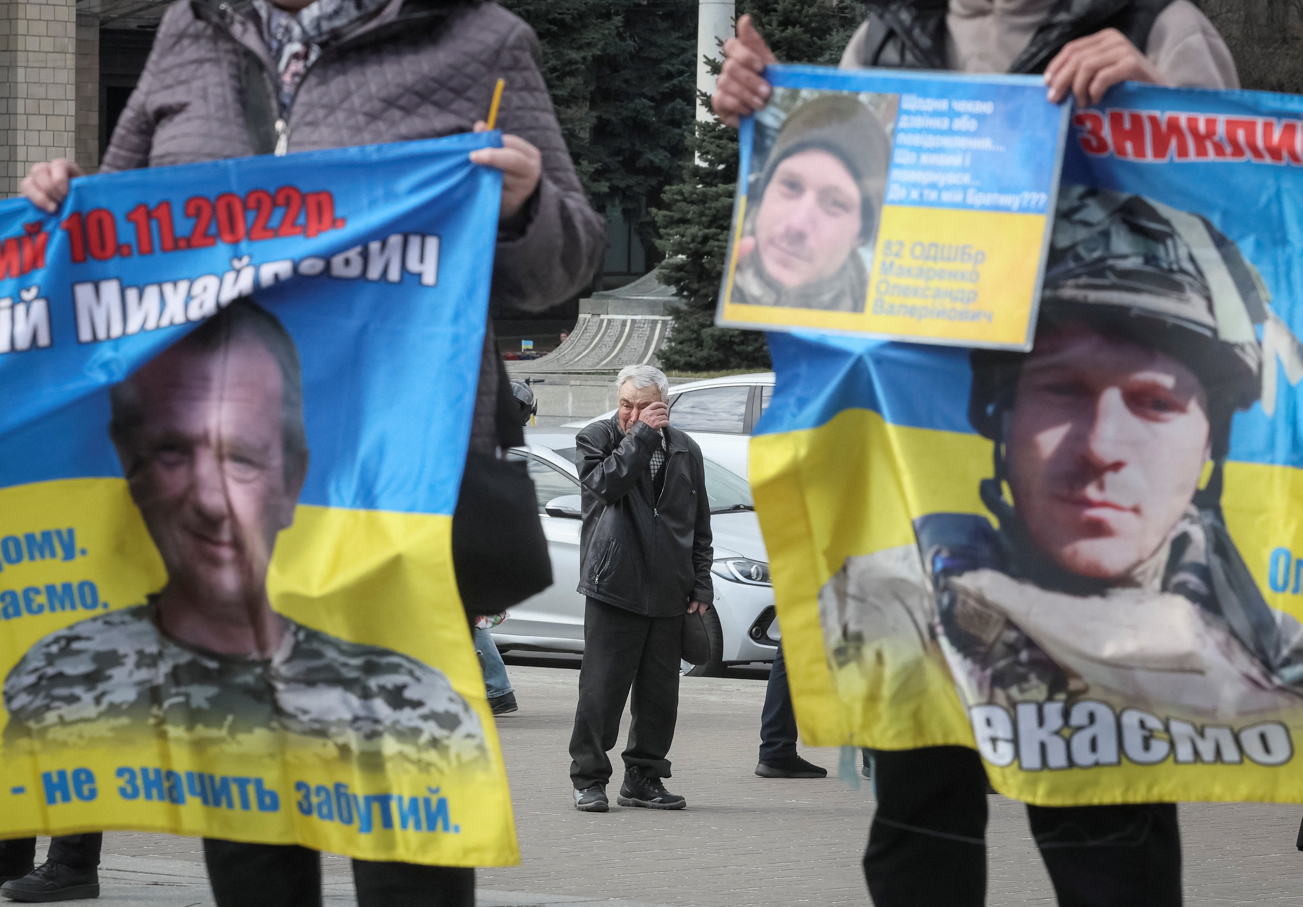 Relatives and friends of Ukrainian servicemen gathered in Kyiv to draw attention to those still in captivity, missing in action, or killed in the war but whose bodies have not yet been returned.
