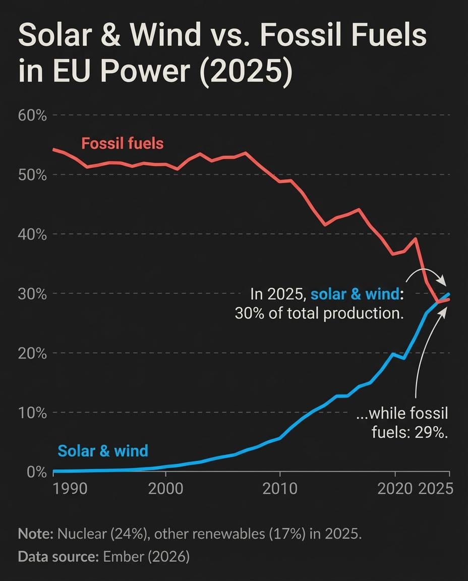 This is great news. The problem is that this is a percentage of the total. The total consumption of fossils may have gone up still.