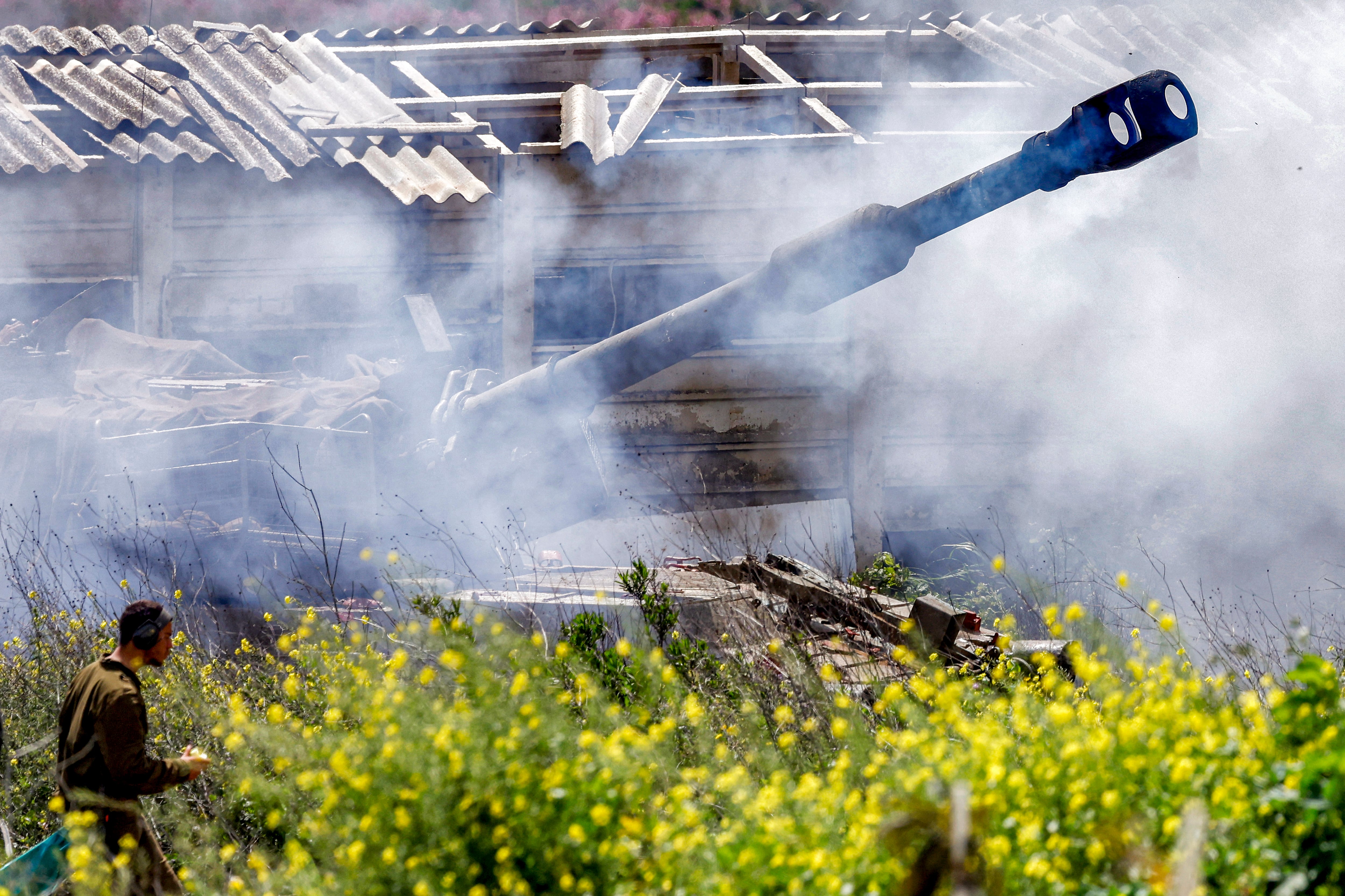 Smoke is released after an Israeli army self-propelled howitzer fires rounds from the upper Galilee in northern Israel near the border with southern Lebanon on March 27, 2026. (Jalaa Marey / AFP via Getty Images)