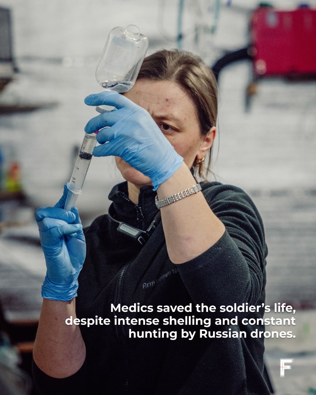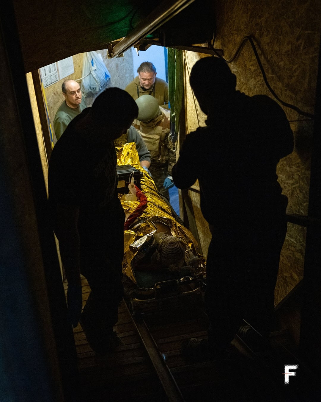 Medics of the 5th Assault Brigade brought Oleksii to the stabilization point in an almost unconscious state.