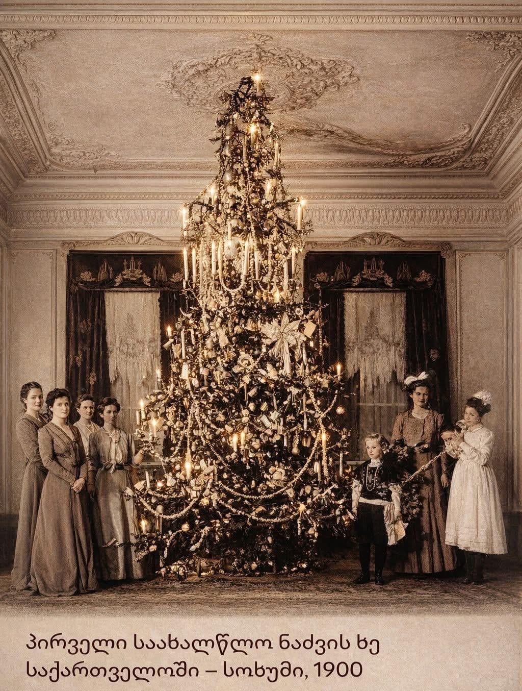 Apparently this picture was found in archive in Britain, the family in the photo is English (with ”Cooper” surname), nobility it seems. This picture was taken in ”Cooper’s villa” in Sokhumi and is considered to show the earliest proven Christmas tree in Georgia.