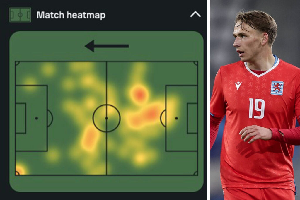 He completed 92% of his 47 asses, with an 81% accuracy rate in the opposition half. He also recorded 19 ball carries – defined as moving the ball at least five metres under control – for a total carrying distance of nearly 147 metres, highlighting his importance in progressing Luxembourg up the pitch.