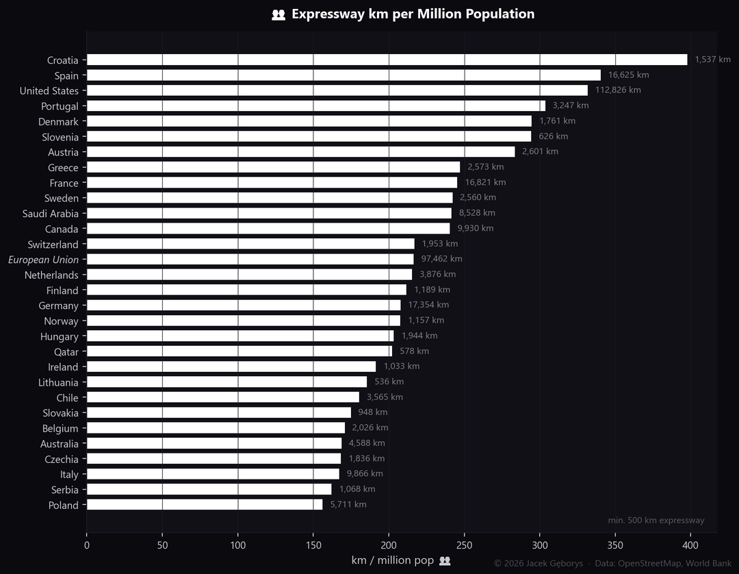Expressways/motorways are high-speed roads where you can only enter and exit via ramps, with no intersections or traffic lights.