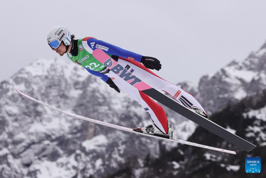 Johann Andre Forfang of Norway competes during the men’s individual HS240 competition at Ski Jumping World Cup in Planica, Slovenia, March 29, 2026. (Photo by Zeljko Stevanic/Xinhua)