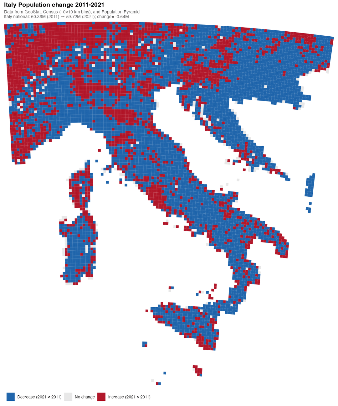 Share Facebook Twitter LinkedIn Pinterest Bluesky Threads Italy’s Population Change 2011-2022 [OC] Posted by cavedave