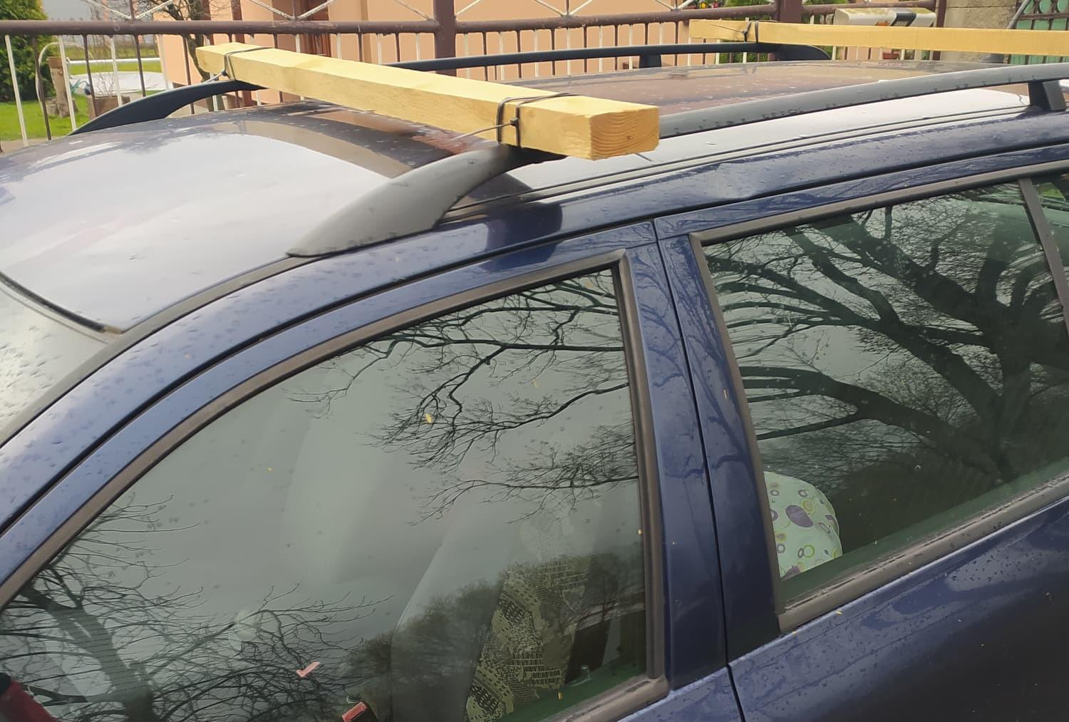 No takhle jsem převážel matraci ve fakt malým autě. Matrace nešla srolovat ani přehnout tak, aby se do auta vešla, tak jsem ji dal na střechu (bez hagusů) a přikurtoval přes okna.