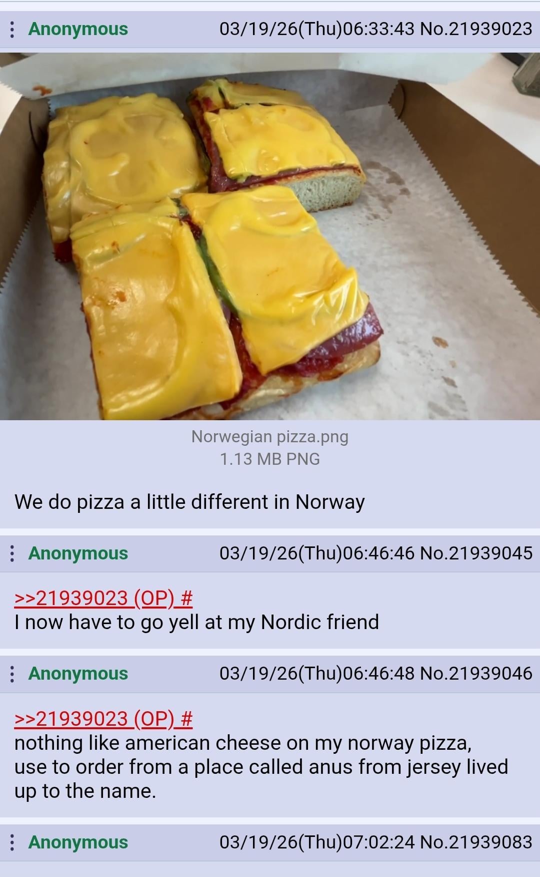 Norwegian mcdonald’s cheese ja but Norwegian pizza never seen this