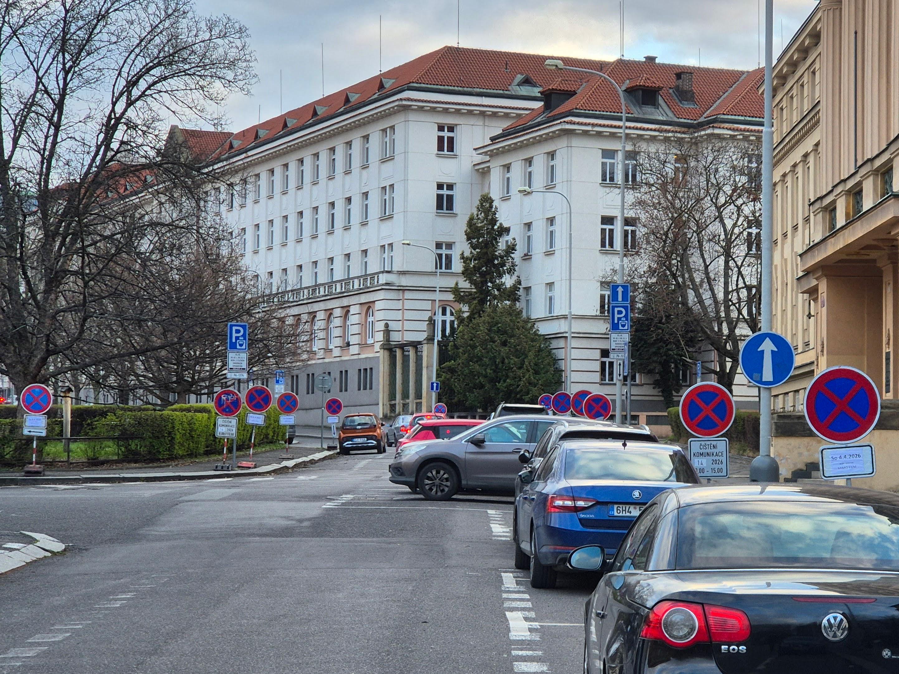 12 značek na obrázku jsou dočasné značky kvůli blokovému čištění, které se bude dít v různou dobu.