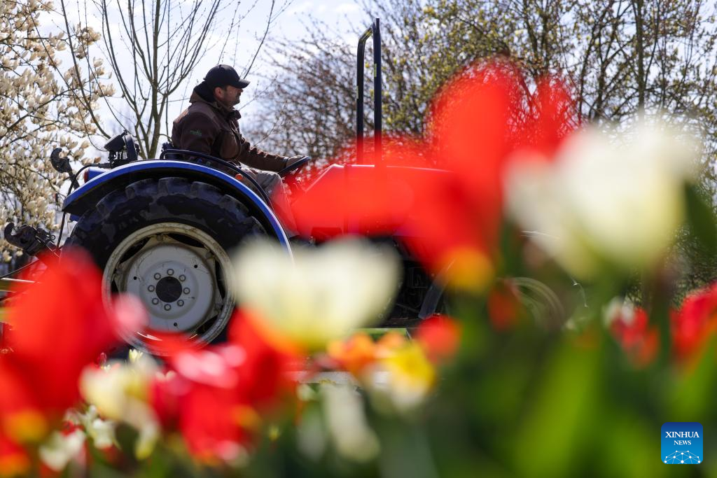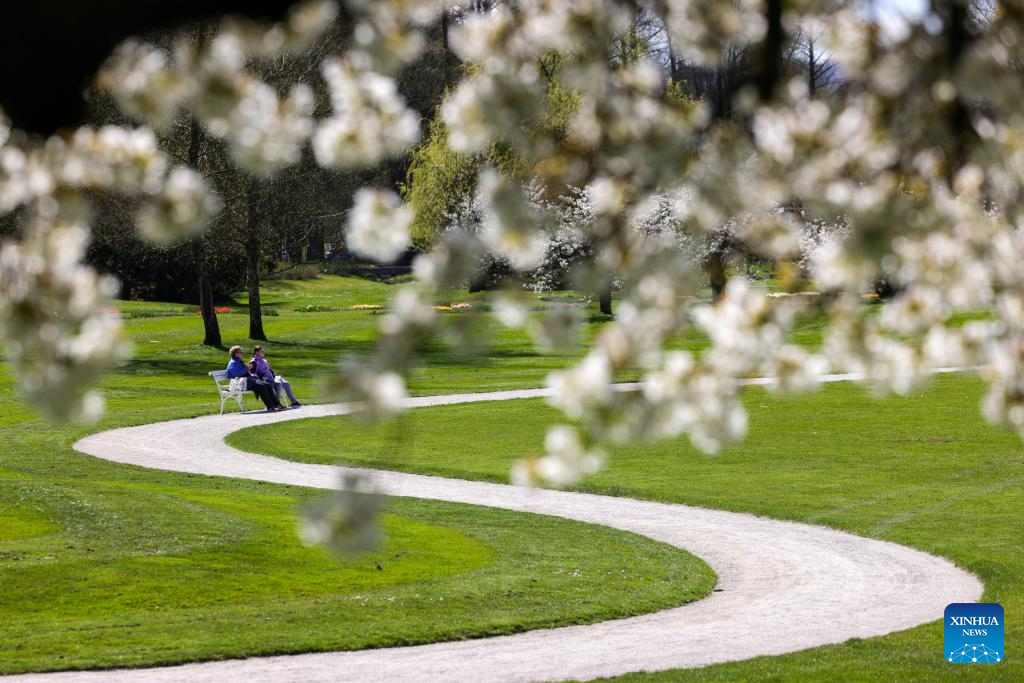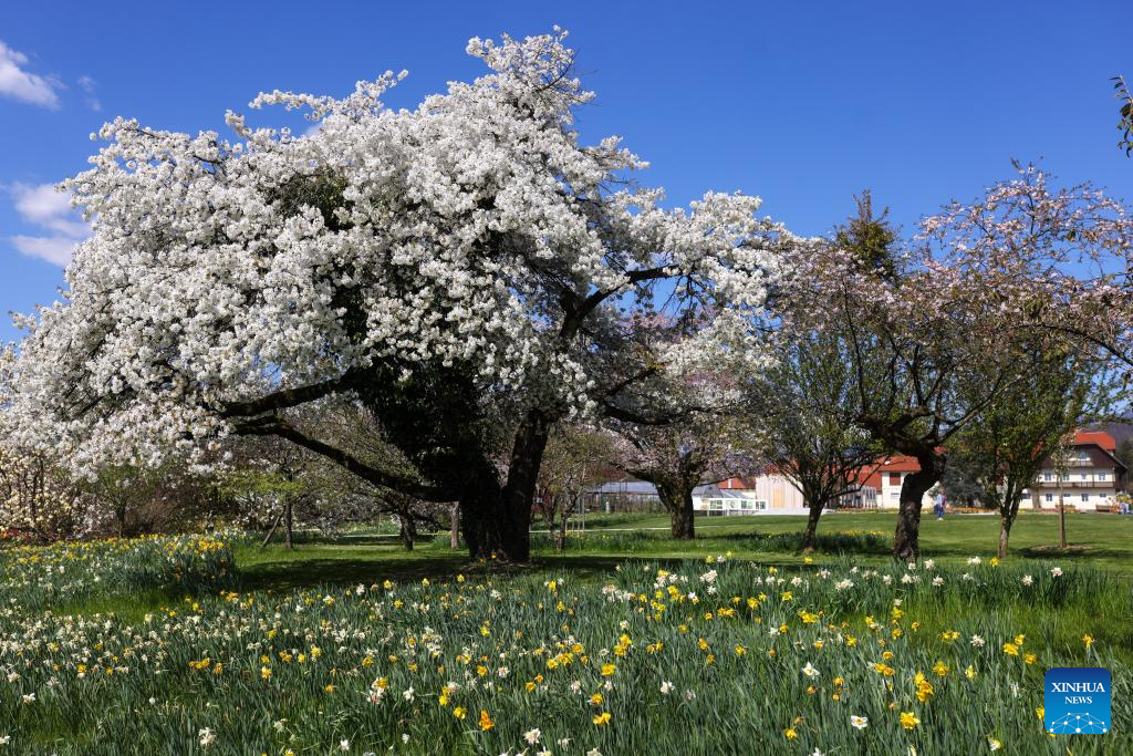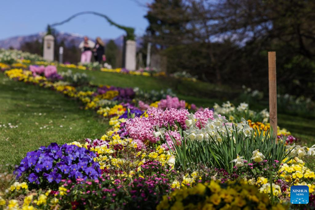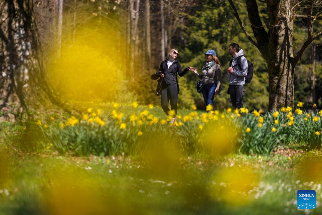 People visit a spring flower exhibition at the Volcji Potok Arboretum near Kamnik, Slovenia, April 3, 2026. (Photo by Zeljko Stevanic/Xinhua)