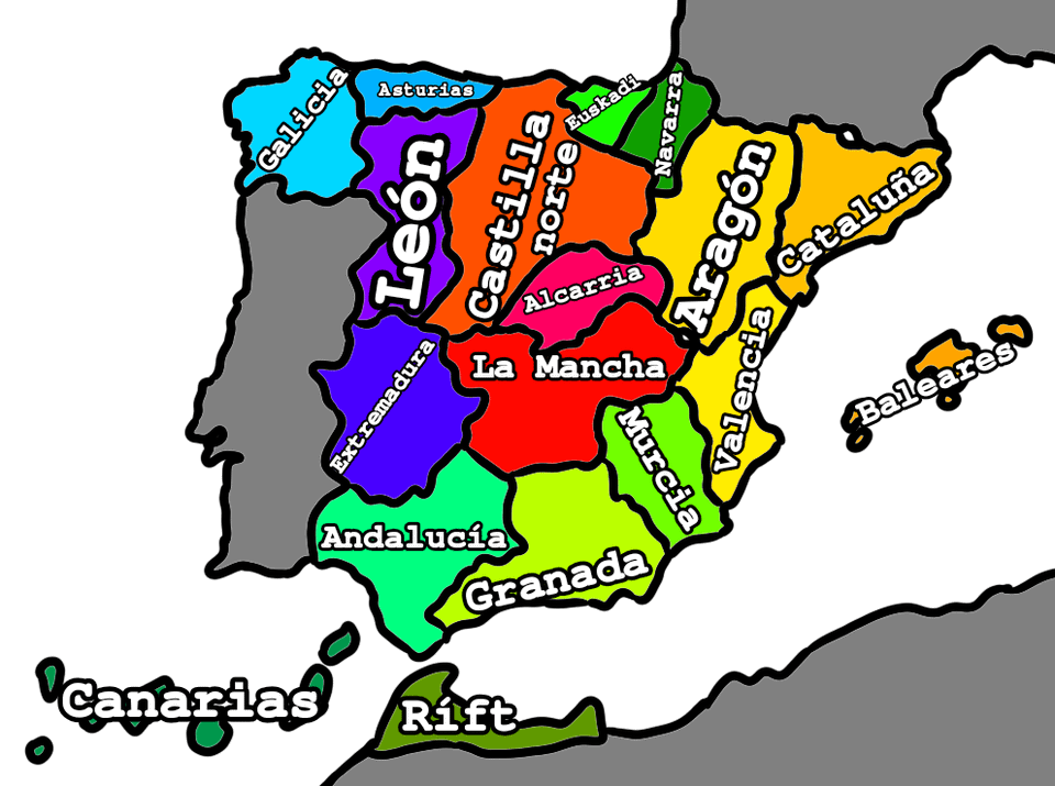 The first image would be a new form of division called regions, they are the largest form of division, the second are autonomous communities, and the third provinces, which I have not changed, those remain the same.