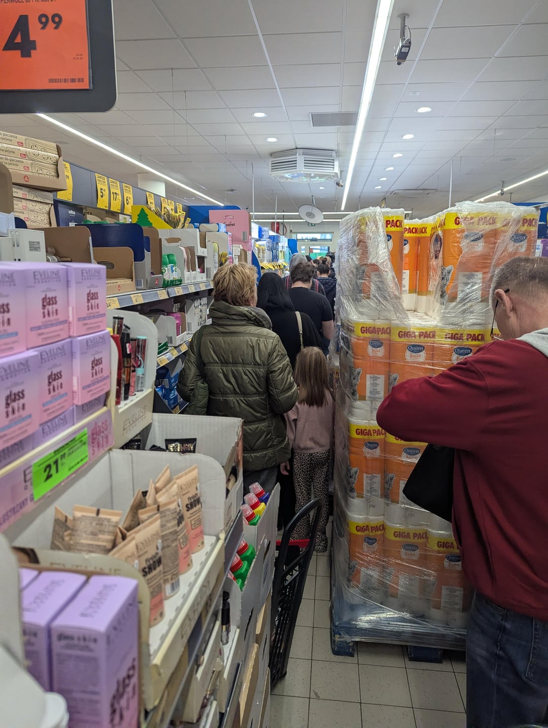 Podziwiam ludzi że chce im się robić zakupy w tym syfie albo stać w tak długich kolejkach, zamiast zrobić zakupy dzień czy dwa wcześniej. Nie ma takiej opcji żeby nie móc ogarnąć zakupów wcześniej.