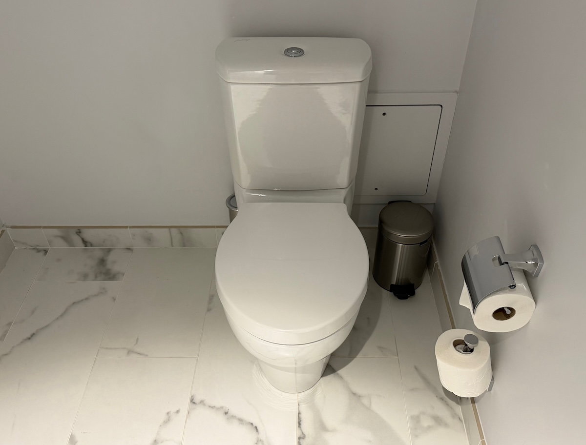 There was a half bathroom back toward the entrance, which had a toilet and sink.