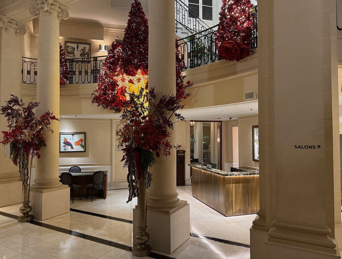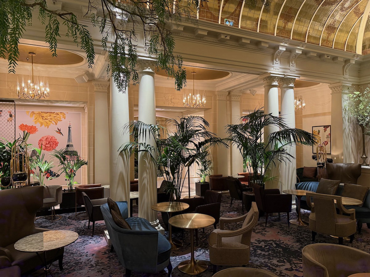 Hotel du Louvre Paris has such an old world feel the second you step into the lobby, in the best way possible. The lobby spans two levels, with lots of historic design elements.
