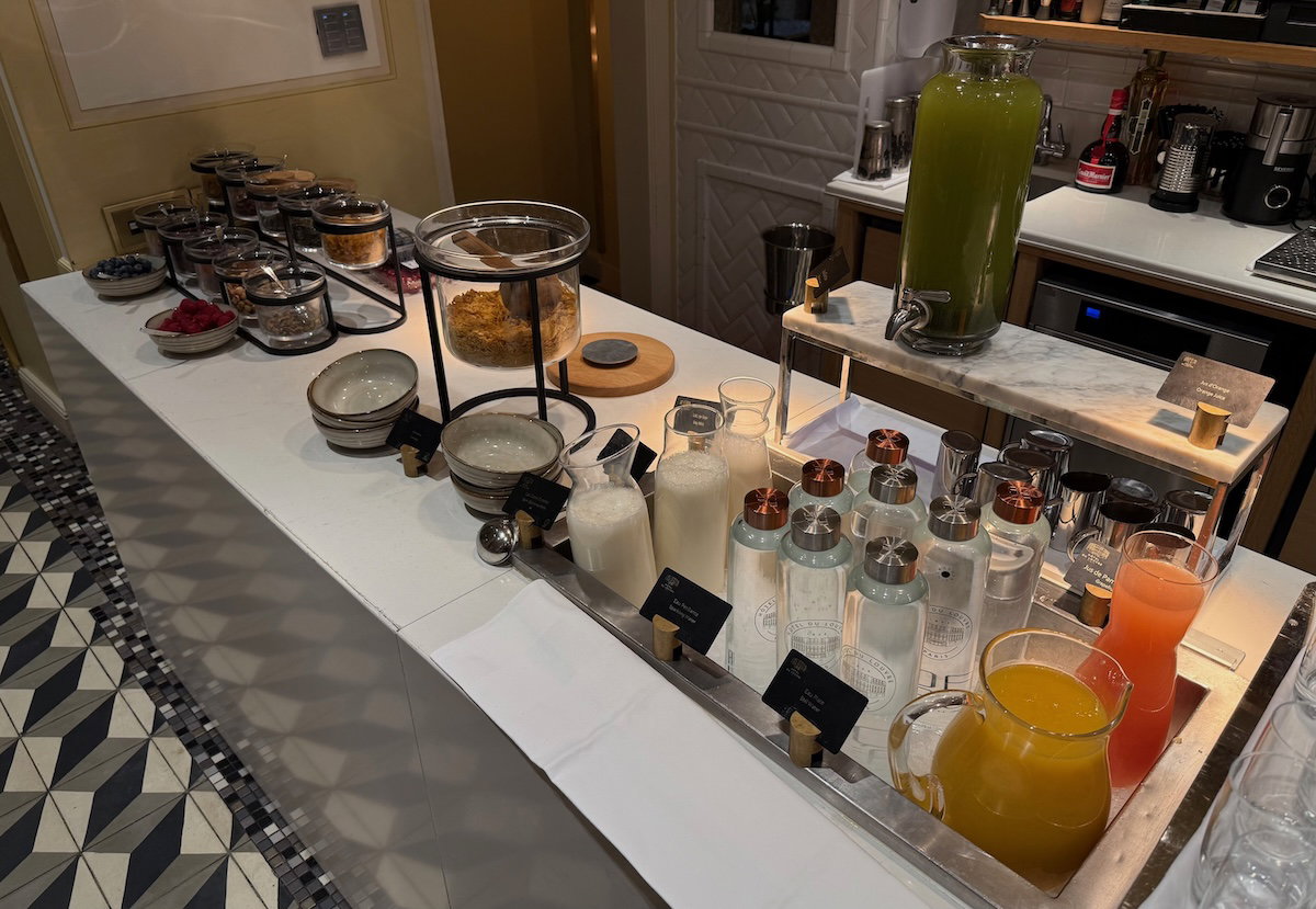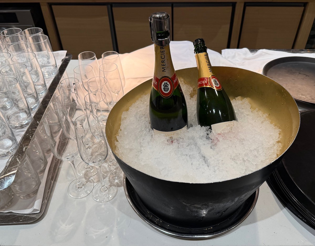 For those looking for a morning buzz, there’s also some champagne at the buffet, which guests can help themselves to.