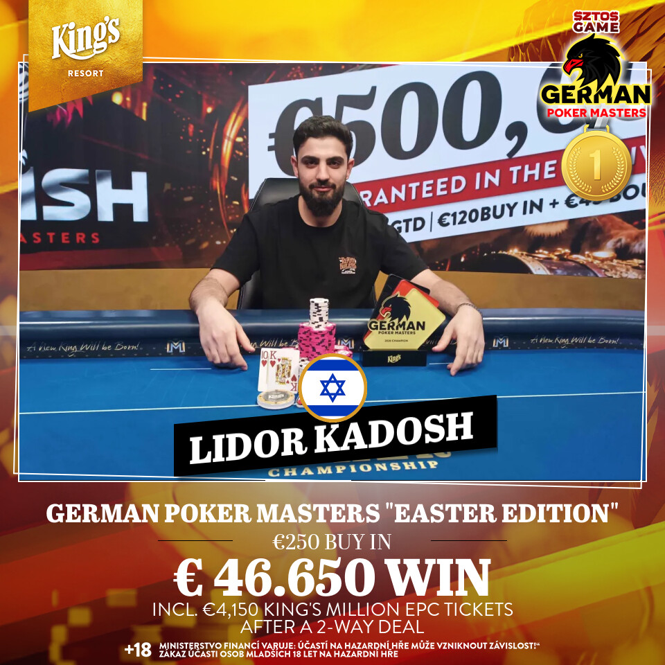 In the closing heads-up, Israeli player Lidor Kadosh and German representative OSAAT agreed on a deal to split the winnings. Subsequently, Kadosh was crowned the overall winner, taking home €45,000 and the prestigious champion’s trophy. Kadosh confirmed his excellent form, having recently finished second at Rozvadov during the SPT KK Half Million Master.