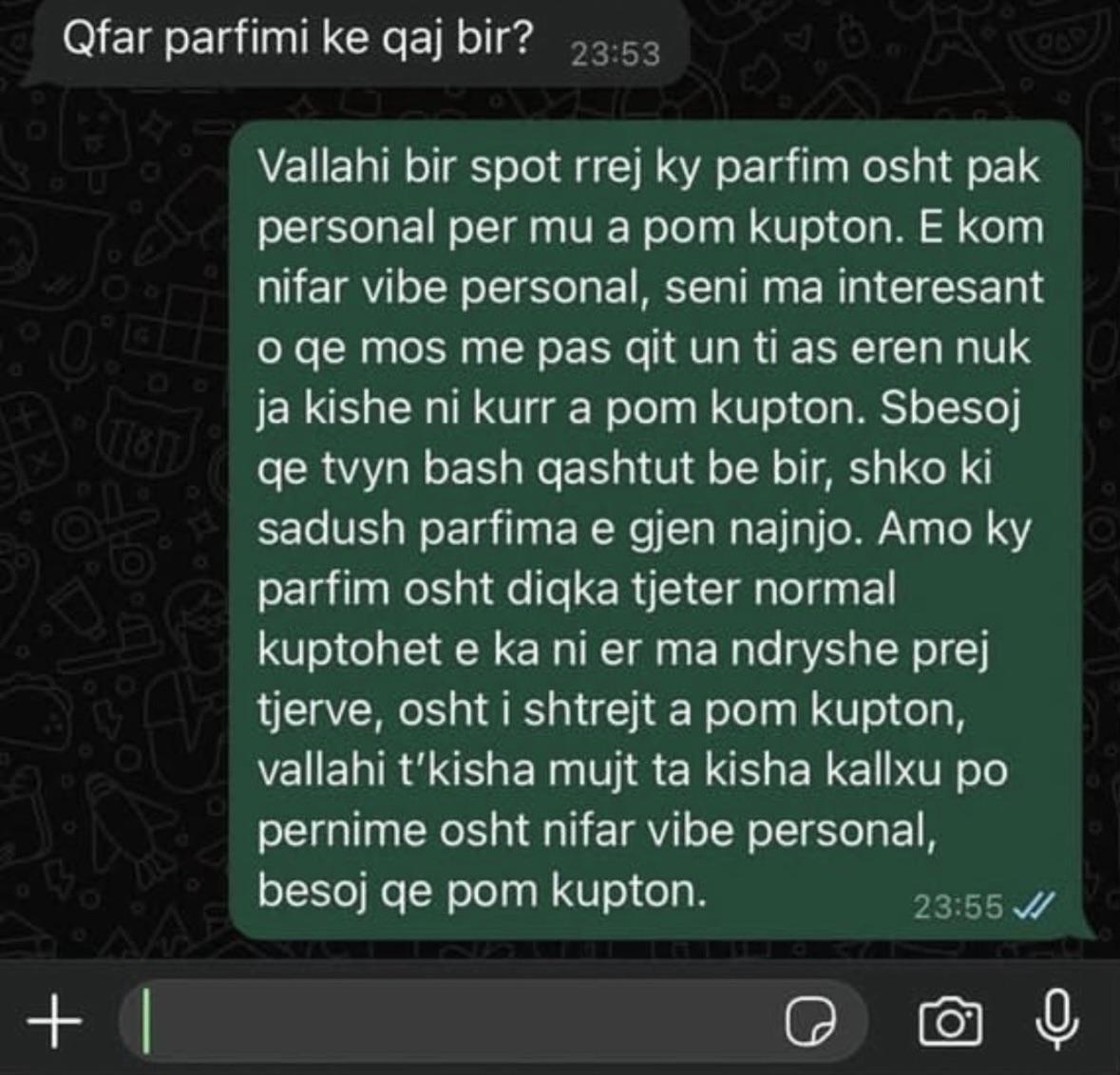 1. E pse bre bro, po don me t’ardh era si ky far qyrrri?! A veç deshte me e dit çfarë parfimi ka ky që me e avoid mos me ble pa hiri 😛