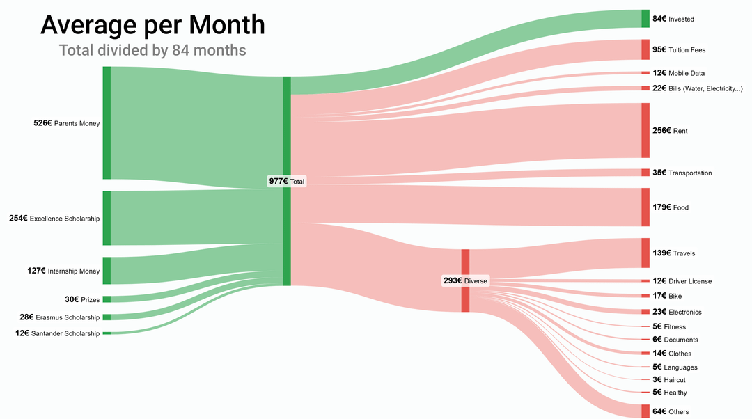 Those are my expenses after 7 years of student life in Europe. During this time I completed my bachelor’s (3 years) + two master’s degrees (2 years each). Thanks to Erasmus and exchange programs, I ended up studying in 6 different countries.