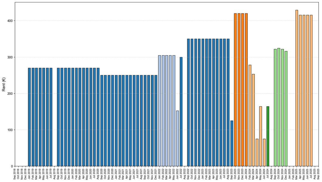 €21500 on rent. Divided by 7×12 makes it €255 a month on rent. Did you share a room with multiple people to rent this cheap?