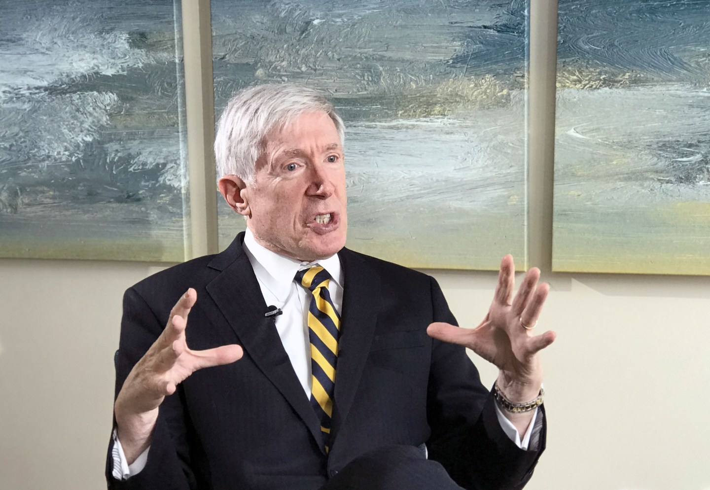 Robert Hormats, former U.S. undersecretary of state, receives an interview with Xinhua in New York April 5, 2018.