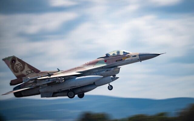 An Israeli Air Force F-16 fighter jet is seen taking off for a major wave of strikes against Hezbollah in Lebanon, April 8, 2026. (Israel Defense Forces)