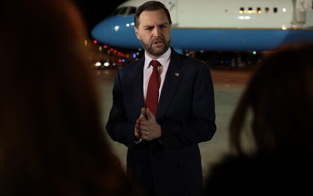 US Vice President JD Vance speaks to the media before boarding Air Force Two to return to Washington DC, after the White House announced he would be leading the US delegation in upcoming peace talks with Iran, at the Budapest Ferenc Liszt International Airport in Budapest, Hungary, April 8, 2026. (Jonathan Ernst / Pool / AFP)