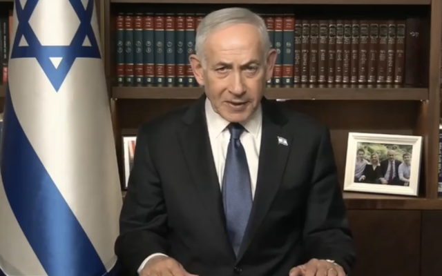 Prime Minister Benjamin Netanyahu in a video statement on April 9, 2026. (Screenshot/GPO)