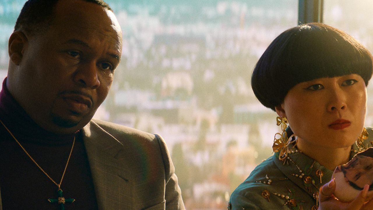 Roy Wood Jr. and Atsuko Okatsuka in “Outcome,” now streaming on Apple TV. (Apple TV via Spectrum News)
