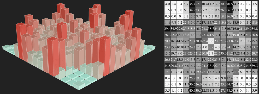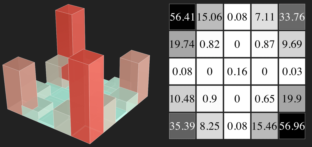 I used a Manim python script for the images and NYT Games archive to get all of the available crosswords. I limited the heatmaps to just the 15×15 and 5×5 patterns.
