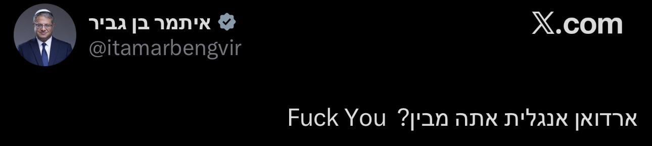 2. Üst üste pek paylaşım yapmazdım da ilginç gerçekten. Netanyahu, Ben Givir, İsrael Katz gibi hükümetin en ağır topları dün Türkiye ile ilgili benzer saatlerde paylaşım yaptılar. Kaçırdığım başka bakan falan olabilir bunlar gördüklerim.